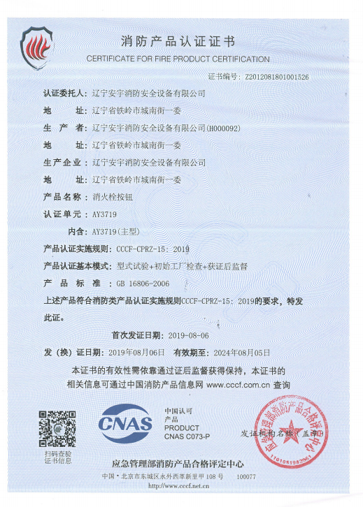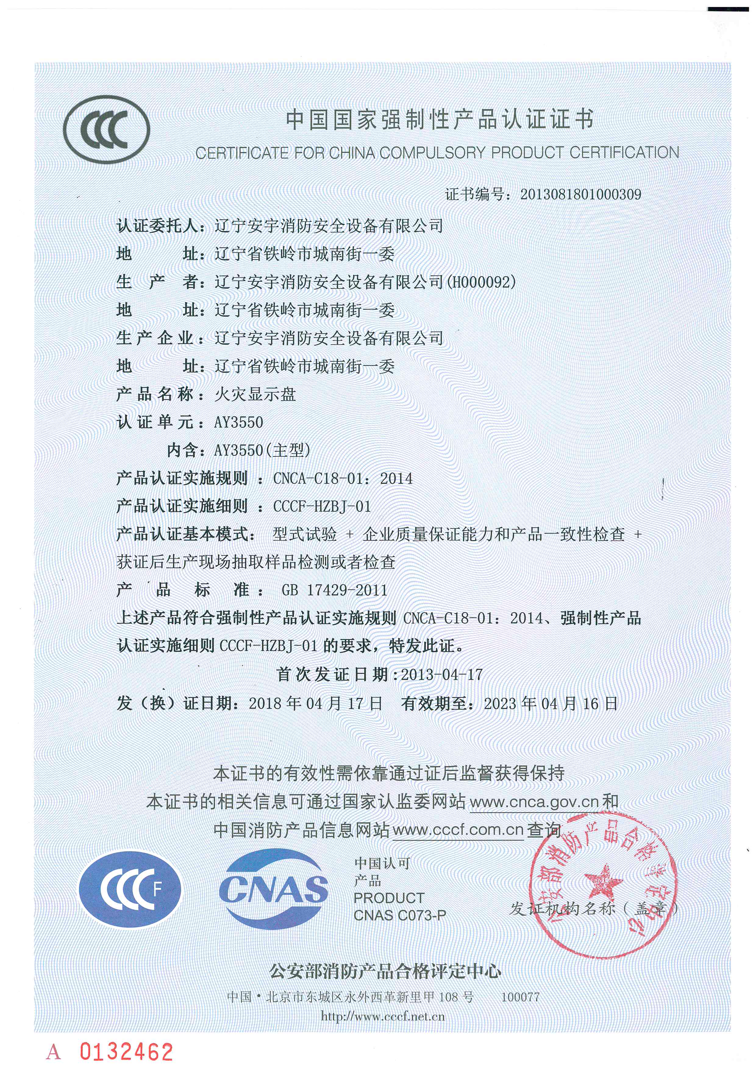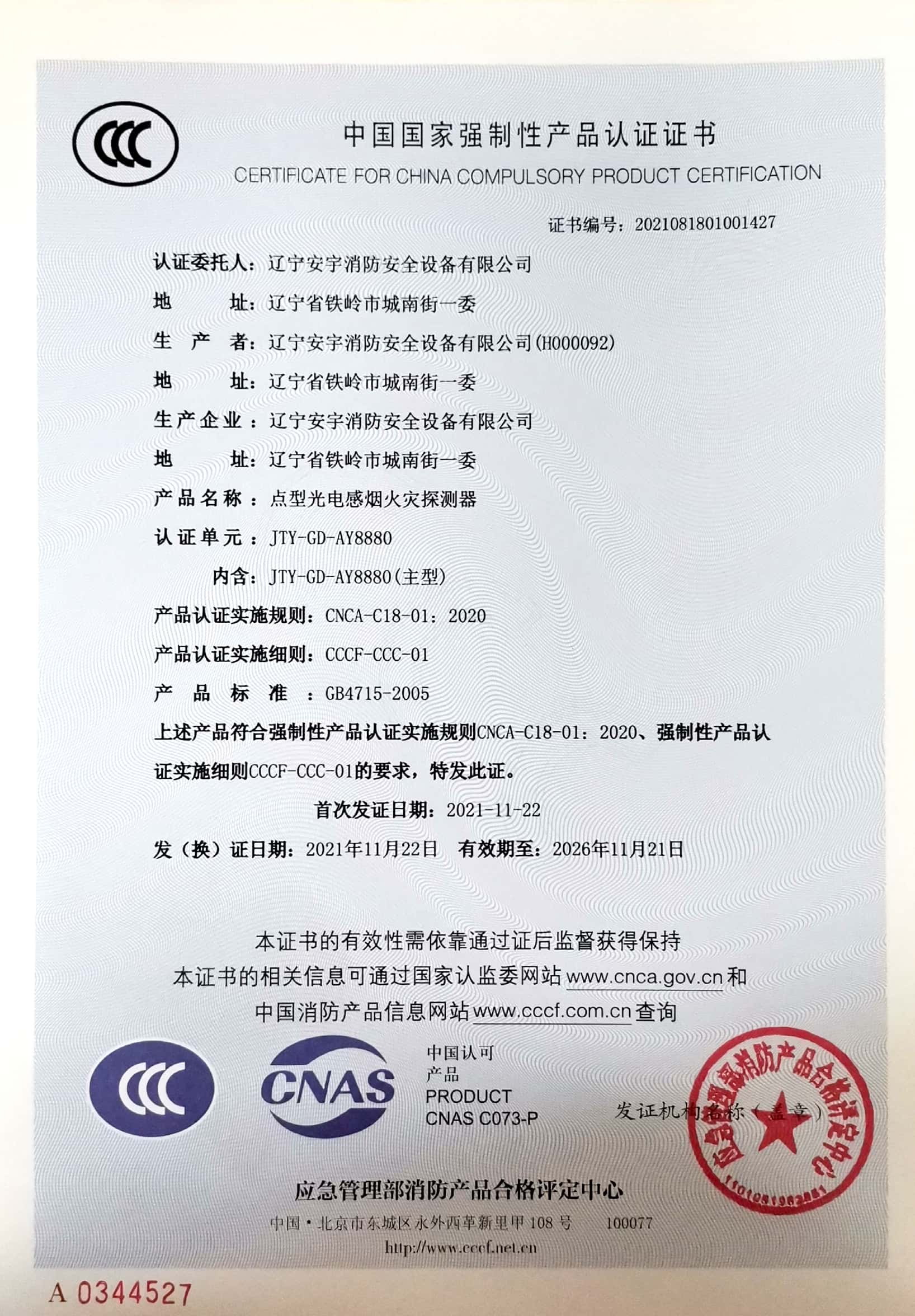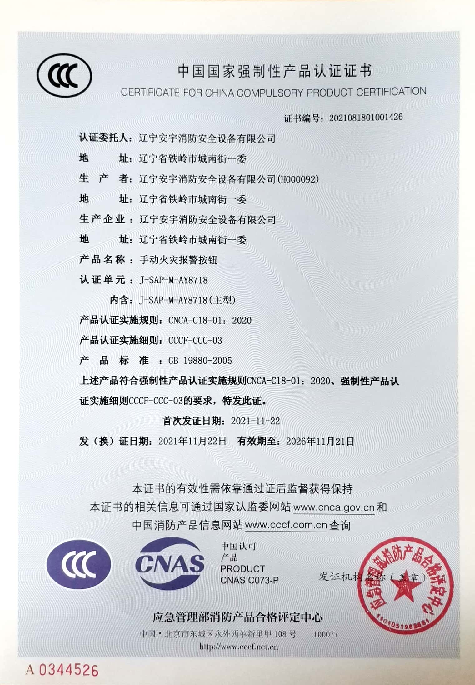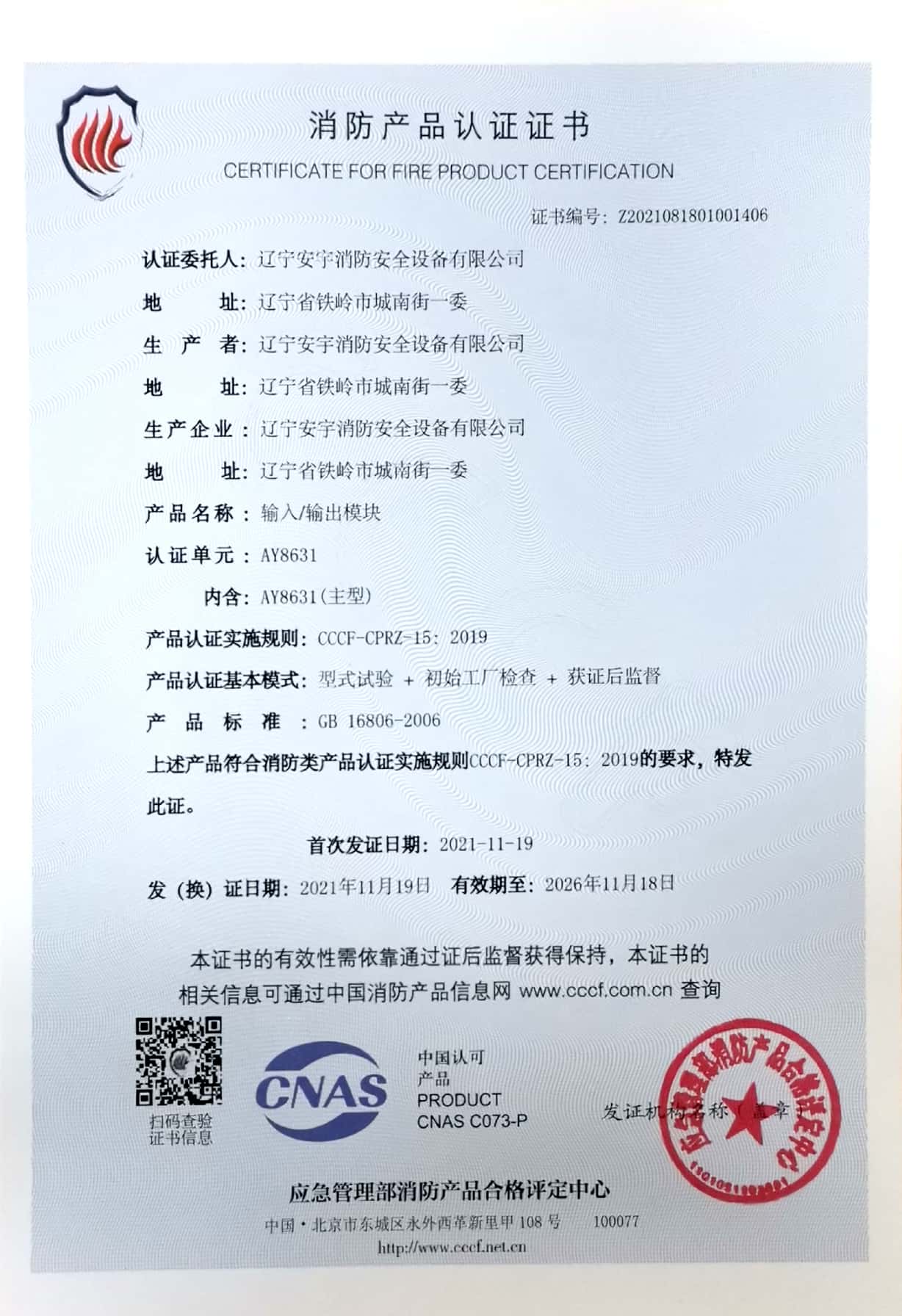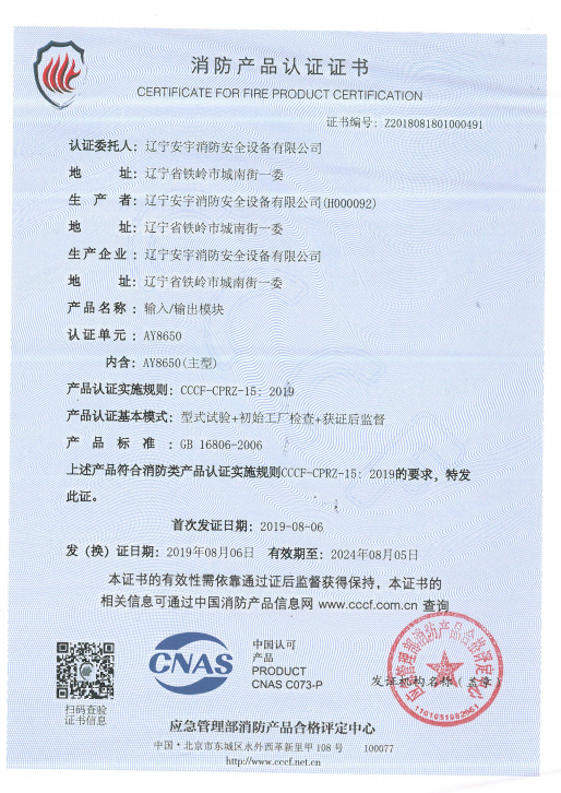 公司以高素質的職業化人才隊伍、完善的現代化管理機製和質量管理(lǐ)體係,獲得了中國認證機構國(guó)家認可委員會(CNAB)認可的中國質量認證中心(CQC)質量管理體係認(rèn)證公安部消防產品合格評定中心的產品質量認證中(zhōng)國強製性產品認證(China Compuisory Certification ,簡稱3C)認證,使安宇產(chǎn)品在技術(shù)含量及產(chǎn)品的質量和穩定性方麵始終處於國際同行(háng)業前端水(shuǐ)平。