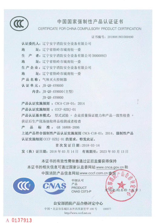 JB-QB-AY8800型氣體滅火控製器可(kě)與JB-QB-AY8100火災(zāi)報警控製器組裝。JB-QB-AY8800型氣體滅火控(kòng)製器可與本公司生產的AY8650輸入/輸出模塊、AY8430氣體釋放警報器、AY8720緊急啟停按鈕、AY5400聲光警報器、AY5630輸入/輸出模塊等設備連接,實現控製氣體滅火設備(bèi)的啟動、停(tíng)止、噴灑以及信息采(cǎi)集等功能。